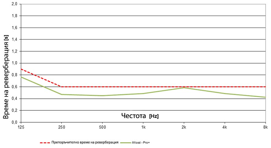 Добри акустични свойства Стенните панели I-WOOD са едни от най-звукопоглъщащите продукти! Намаляват шума както в частни домове, така и в обществени пространства. С таванните и стенни облицовки I-Wood са комбинирани дизайн, акустика и устойчивост в един и същи продукт, който се инсталира лесно и бързо. Вижте какво показват направените изследвания в изображението по-долу: