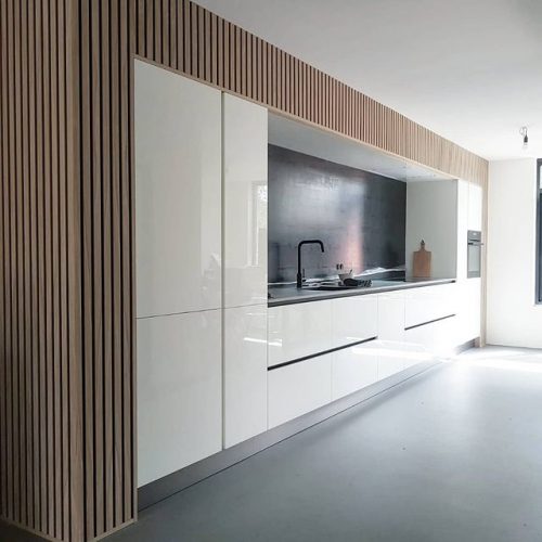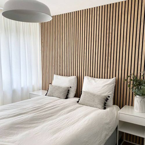 Акустична MDF ламперия с дъбов фурнир. В оребренията е вграден акустичен филц, който поглъща звука и така подобрява акустиката в помещението. Предлага се на панели, готови за монтаж. Гърбът на ламперията също е с MDF фурнир дъб. Серията Basic често се използва като декорация и акустична облицовка, например на стени, плотове, камини, гардероби, шкафове или като табла за спалня.